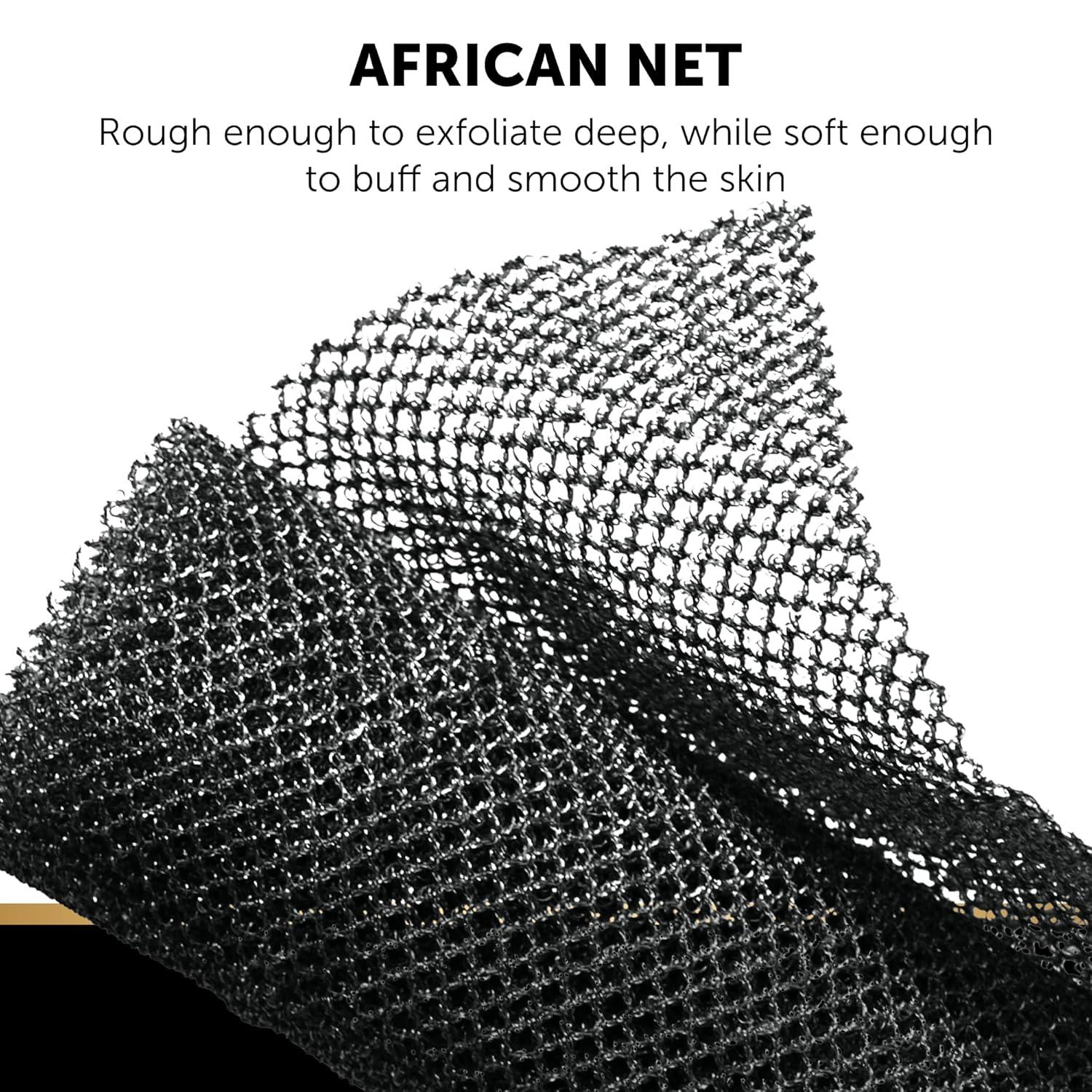 African Net Sponge Included: Long-lasting exfoliating body scrubber net for full-body cleansing, lathers soap easily, dries quickly and reaches hard-to-clean areas like back and feet