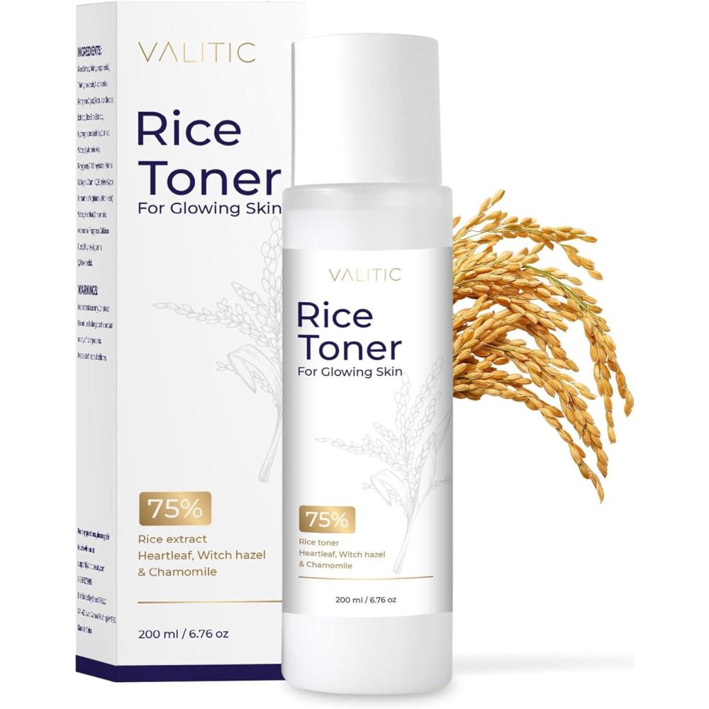 Rice Extract 75% – Elevating your skin’s natural glow. Valitic's rice toner enhances hydration, refines skin texture and balances skin tone for a radiant glass skin appearance